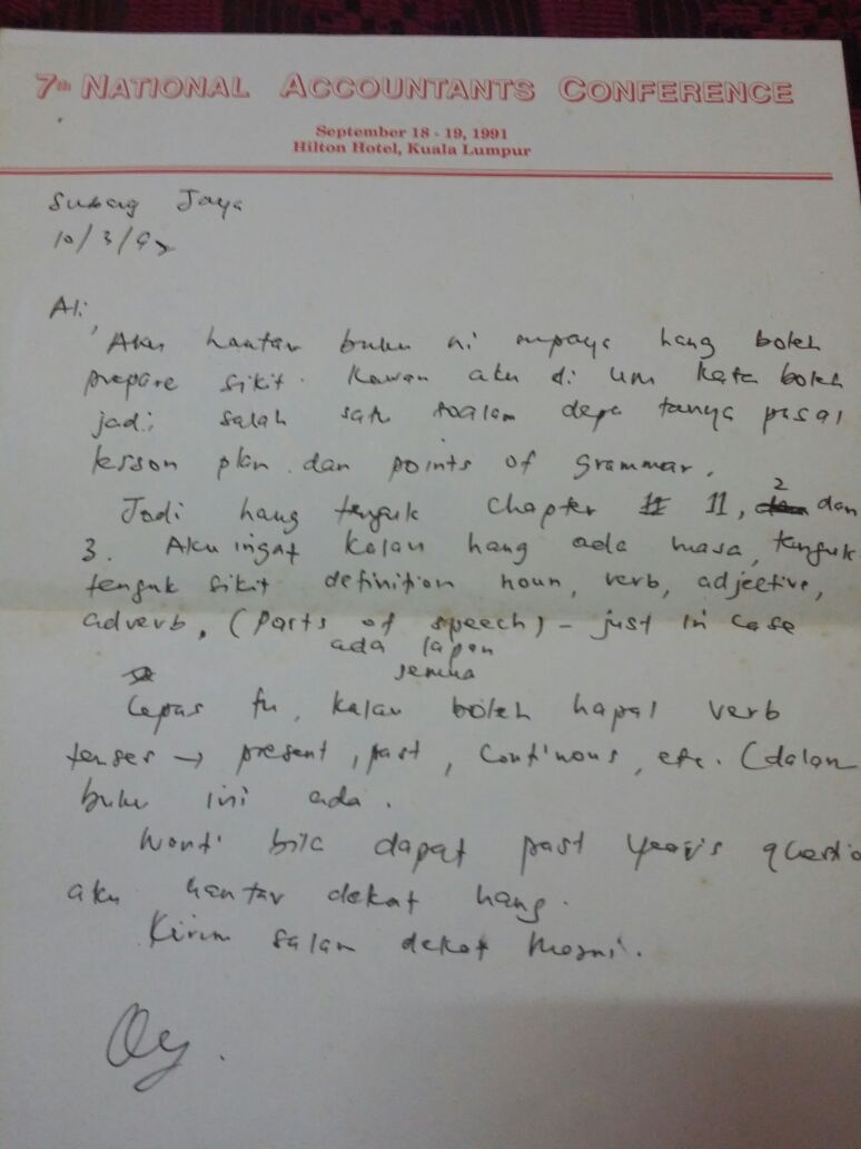 Diiringi surat untuk Pak Teh pada 1992 menggunakan kertas persidangan akauntan profesional 1991. Kandungannya menggambarkan penulisnya seorang yang mengambil berat hal-ehwal adik beradik
